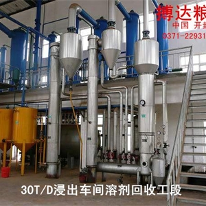 浸出设备(溶剂回收设备)油脂浸出设备溶剂回收,一般采用长管蒸发器、层蝶式汽提塔、列管式冷凝器或喷淋式冷凝器。其作用把萃取液中的产品与萃取溶剂分离开加以回收。